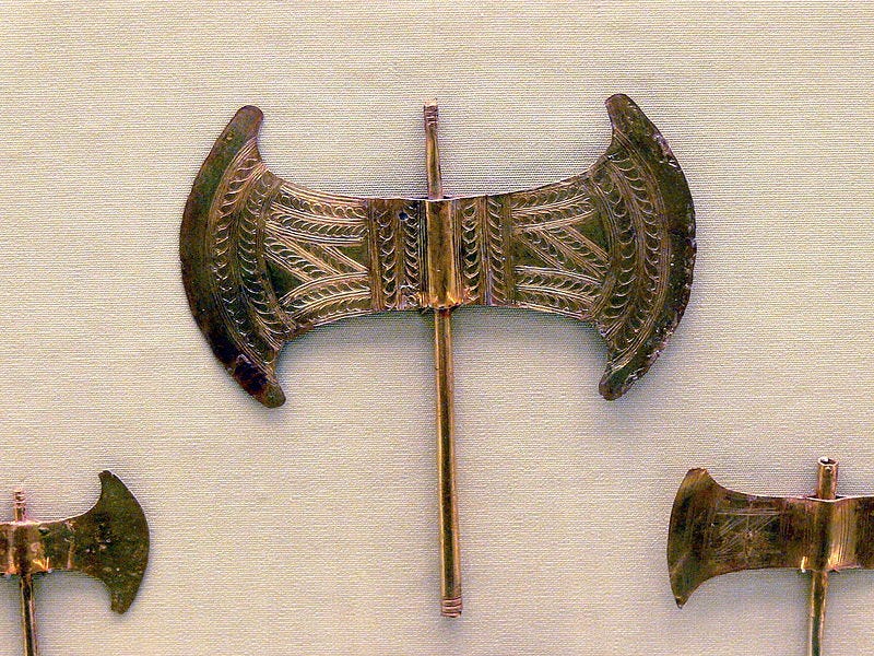 To interrelate these calculations with what is stated above, the “Venus figurines” fall squarely during the period of the Silver Age of Hyperborean spirituality, whereas the Labrys found in the Americas go into the late Bronze Age of Atlantean spirituality before the Deluge, which we think occurred somewhere before 4,300 BC, roughly around the veil of “pre-history”. We choose not to give precise dating for what is to be related shortly.